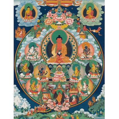 【简介】: 1987年,在十世班禅大师倡导和亲切关怀下成立了西藏刚坚集团,旗下民族手工艺部分专门分出一个小组,由嘎钦·洛桑平措、嘎钦·阿顿两位大师作为唐卡绘画艺术组的老师,这个小组就是如今的刚坚唐卡绘画艺术中心。